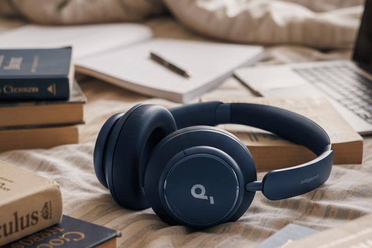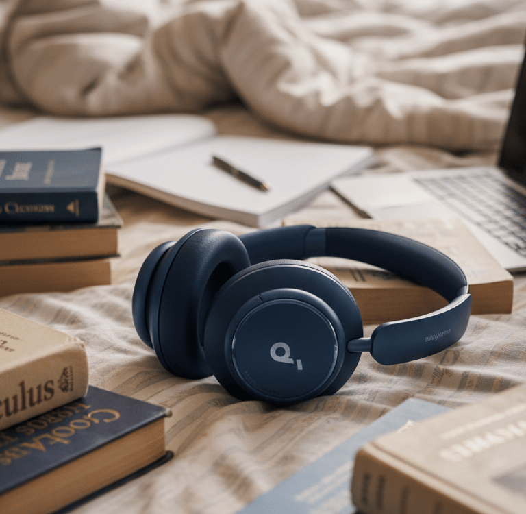 Why they suit small study spaces The Q45 is the standout all-rounder in this list. It balances comfort, noise reduction, and battery life in a way that suits the reality of student and WFH life, moving between campus, home, and shared living. The strong ANC is particularly effective in share houses and apartments where background noise is constant. Folds down flat when not in use, which keeps it manageable on a small desk or in a bag.